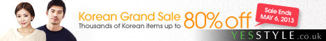 <script type=”text/javascript”><!–google_ad_client = “ca-pub-6849065204451610”;/* 아드 */google_ad_slot = “5493515377”;google_ad_width = 180;google_ad_height = 90;//–></script><script type=”text/javascript”src=”http://pagead2.googlesyndication.com/pagead/show_ads.js“></script> <a href=”http://track.webgains.com/click.html?wglinkid=259821&wgcampaignid=98517” onMouseOver=”window.status=’http://www.yesstyle.co.uk‘;return true;” onMouseOut=”window.status=”” target=”_blank”><img src=”http://track.webgains.com/link.html?wglinkid=259821&wgcampaignid=98517&js=0” width=”468″ height=”60″ border=”0″ alt=””/></a>
